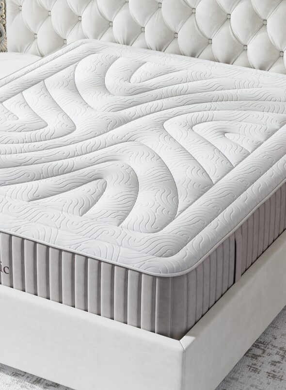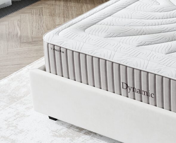 La exterior, Dynamic se remarcă printr-un design impunător și bine proporționat. Înălțimea de 28 cm și detaliile grafice discrete conturează o prezență premium, solidă și echilibrată. Cusăturile fine, textura plăcută și finisajele riguroase oferă o imagine modernă, care se integrează perfect în dormitoare elegante sau spații hoteliere rafinate. Este o saltea care transmite din privire ideea de stabilitate și confort avansat.