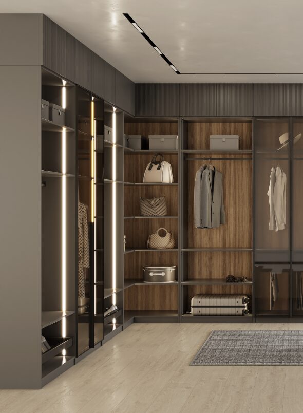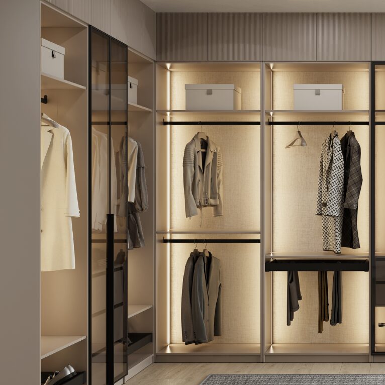 Într-un spațiu în care stilul de viață se intersectează cu funcționalitatea, INTERIO vine cu o abordare modernă a garderobei - un sistem de depozitare modular, inteligent și personalizabil, creat pentru a aduce claritate și eleganță în orice locuință. Mai mult decât un simplu dulap, INTERIO este un statement de design care integrează nevoile reale ale vieții de zi cu zi într-o estetică atent conturată. Este soluția completă pentru cei care caută un dressing premium, adaptabil și gândit în detaliu.